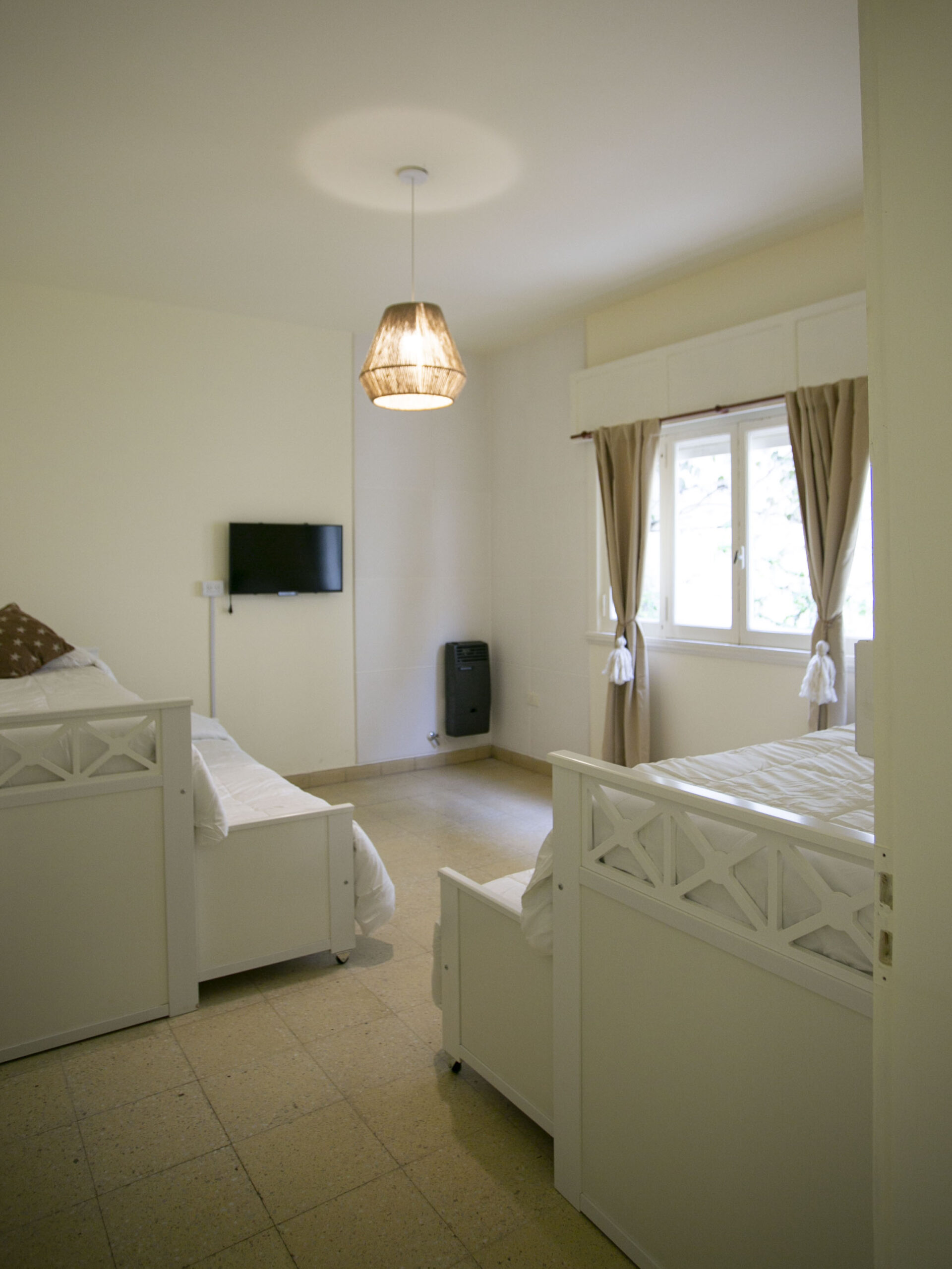 También muy amplio, con ventanal al pasillo de acceso, 2 camas marineras, TV.